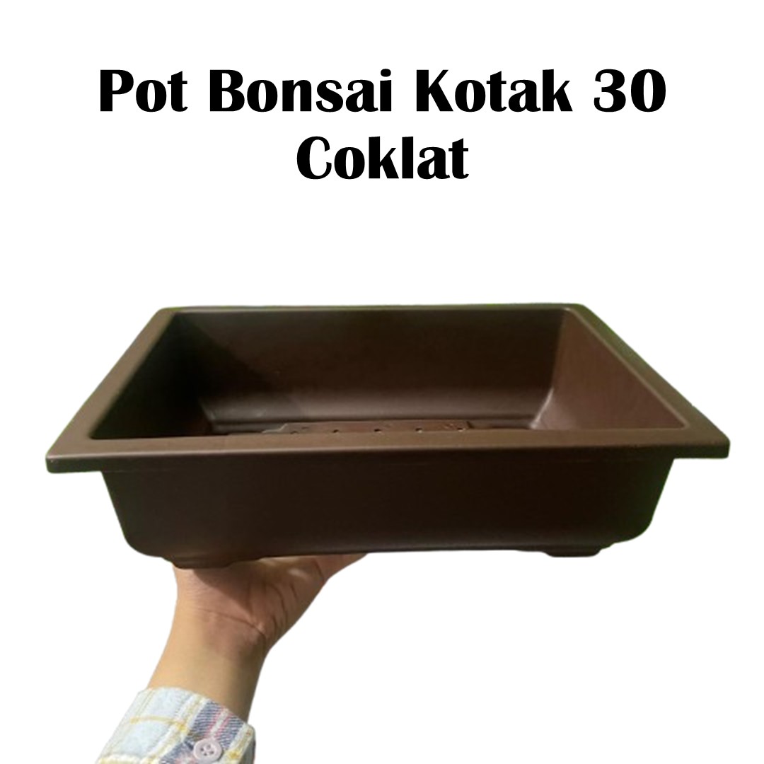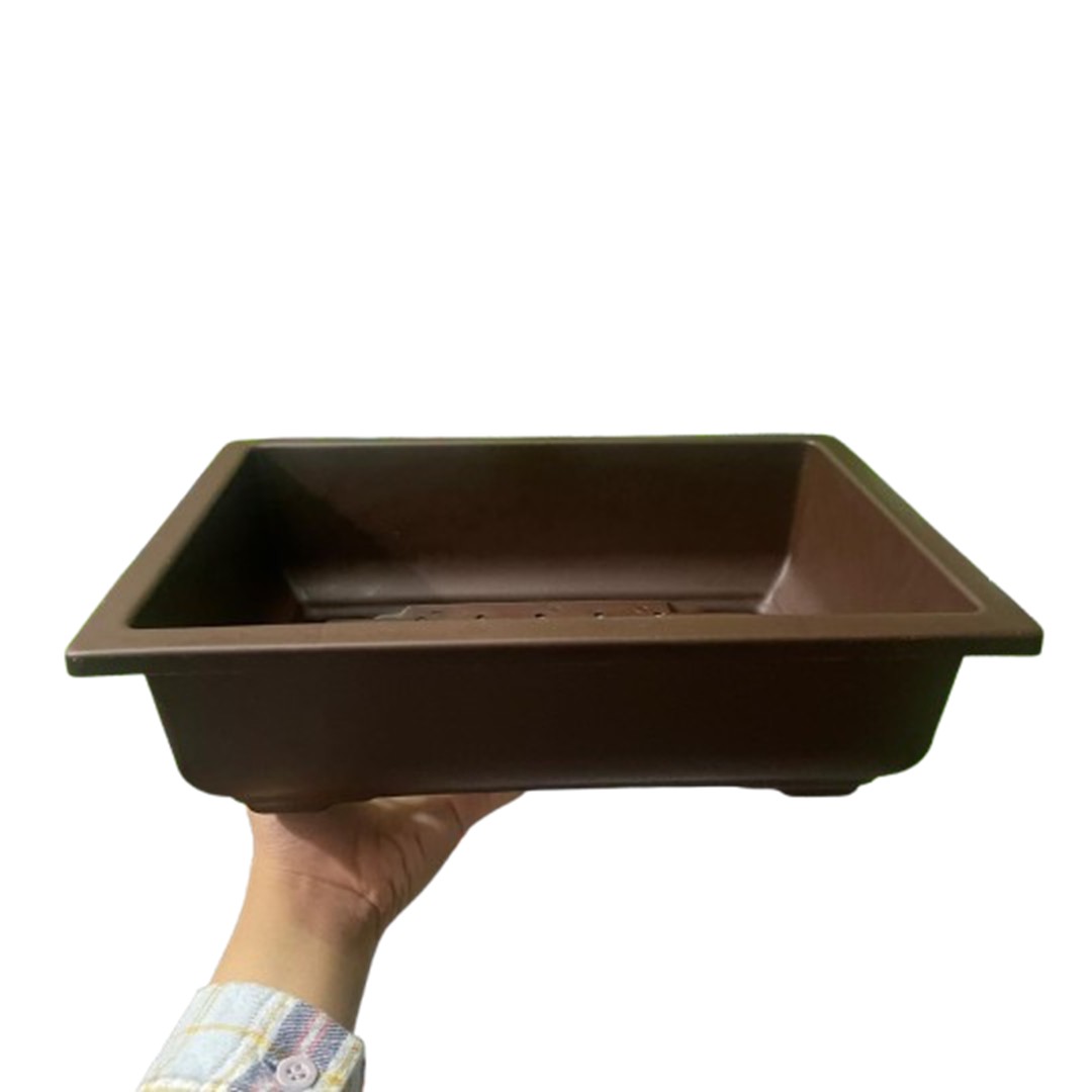 Lengkapi koleksi bonsai Anda dengan pot kotak berkualitas tinggi. Didesain khusus dengan estetika klasik yang sangat cocok untuk berbagai jenis aliran bonsai (Formal, Informal, maupun Cascade). Warna coklatnya memberikan kesan natural dan menyatu sempurna dengan batang pohon serta media tanam.